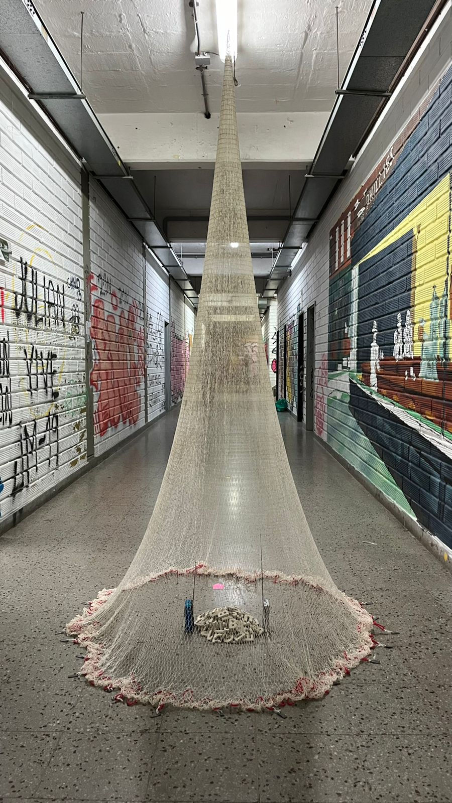 A la serie la acompaña una instalación hecha con una atarraya suspendida, que en su interior contiene letras y dos radios que transmiten un paisaje sonoro en reflexión con la jerga costeña y las palabras en desuso ¿Qué palabras se pescan? Y ¿Cuáles mueren o se pierden ? Tomando las bondades metafóricas y poéticas de signos de pesca y el lenguaje verbal, abordándolo como un primer sistema simbólico que nos conecta con el mundo: no solo para nombrarlo, sino también para señalar una realidad.